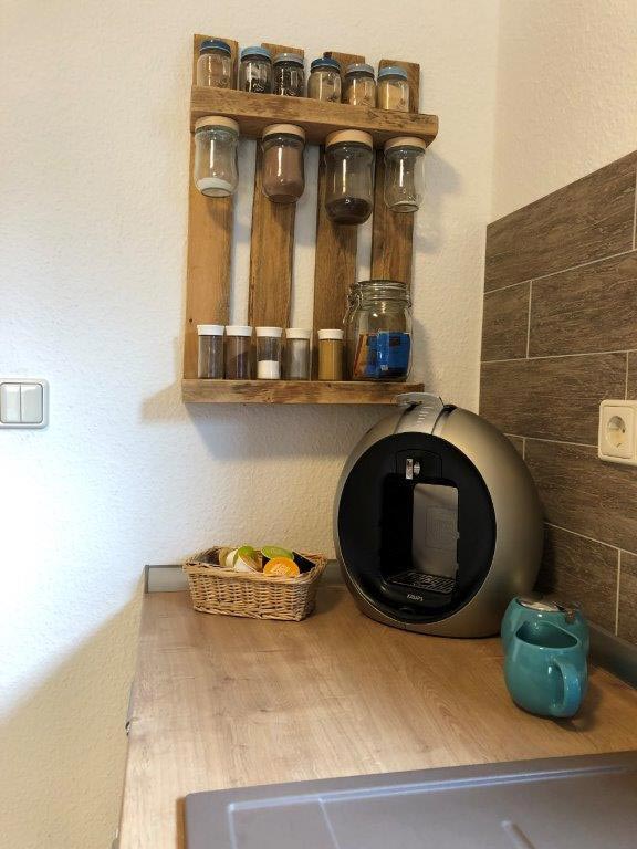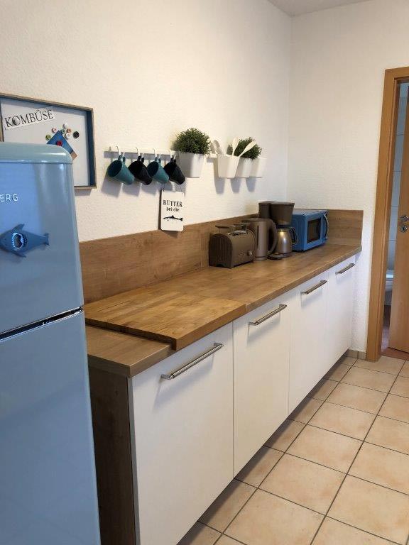 Kühlschrank mit Gefrierfach, Mikrowelle, Kaffeemaschine, Toaster, Wasserkocher, Kapselmaschine (Dolce Gusto), Spülmaschine,