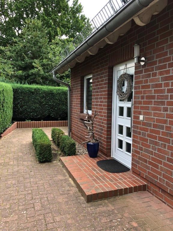 mit Tisch, 6 komfortablen Hochlehnern (inklusive Aufliegern), Sonnenschirm und Grill - ein Wäscheständer steht ebenfalls zur Verfügung