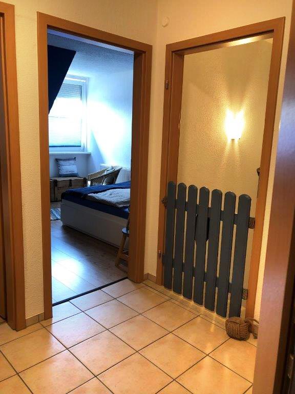 Treppenschutz, Hochstuhl, Babyreisebett mit Bettzeug, Töpfchen, Kindergeschirr, Kindertritt (für das Waschbecken), Plüschtiere